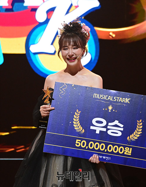 뮤지컬 배우 아리현이 9일 오후 서울 종로구 상명아트센터 계당홀에서 열린 뮤지컬스타K 결승전에서 우승을 차지하고 소감을 전하고 있다.유튜브 채널 가로세로연구소가 주최한 뮤지컬스타K는 뮤지컬 배우들이 참여하는 서바이벌 경연 대회다. 심사위원으로는 김세의 가로세로연구소 대표, 리한 음악감독, 구충길 배우가 참석했다.이날 결승전은 TOP6가 준비한 단 한곡의 무대로 진행됐다. 최종 결과는 심사위원단과 현장에 참석한 방청객의 점수와 시청자들의 문자 투표를 합산해 결정됐다. 우승은 아리현 배우가 차지해 상금 5,000만원의 주인공이 됐다.