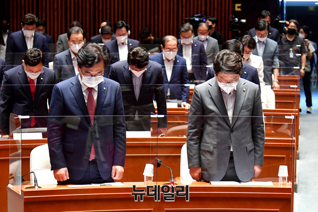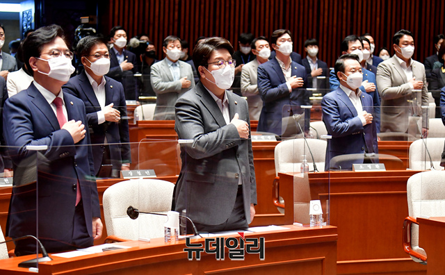 [포토] 국민의례 하는 권성동 당대표 직무대행