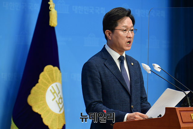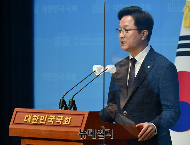 더불어민주당 당대표 출마를 선언한 강병원 의원이 12일 오전 국회 소통관에서 더불어민주당 혁신 방안 관련 기자회견을 갖고 있다.