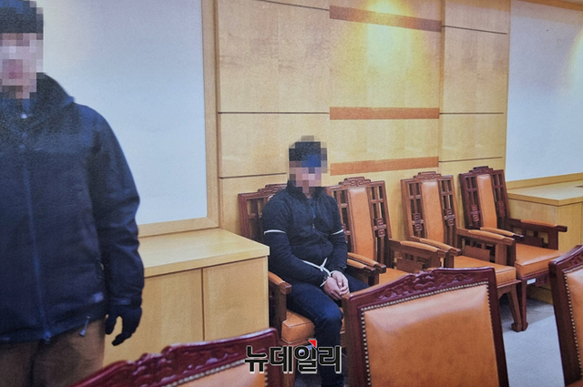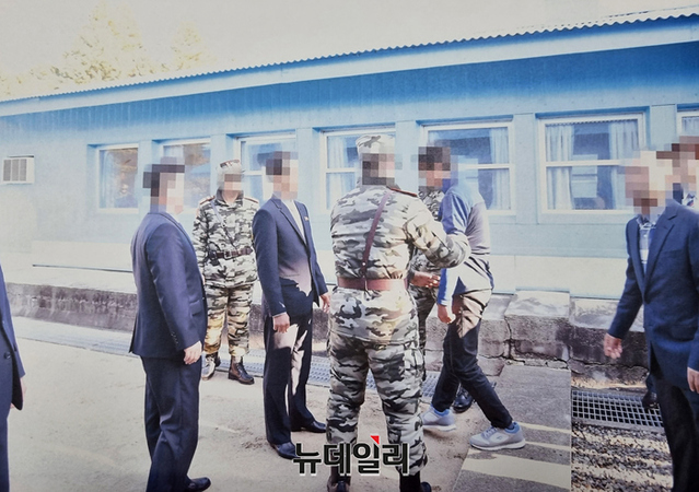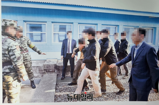 2019년 문재인 정부 당시 탈북 어민 2명을 판문점으로 북송하는 사진이 공개됐다. 태영호 국민의힘 의원이 이날 공개한 사진은 A4용지에 프린터 돼 다시 촬영된 사진이다.사진은 탈북 어민이 판문점으로 북송되지 않으려고 안간힘을 쓰는 모습과 북송전 대기실으로 보이는 곳에서 앉아 있는 모습이 담겼다. (사진=태영호 의원실)
