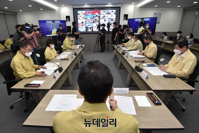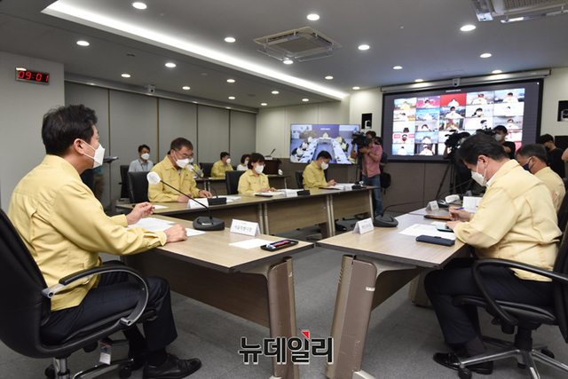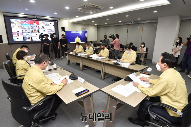 [포토] 오세훈 서울시장, 구청장들과 코로나19·폭염 대책 논의