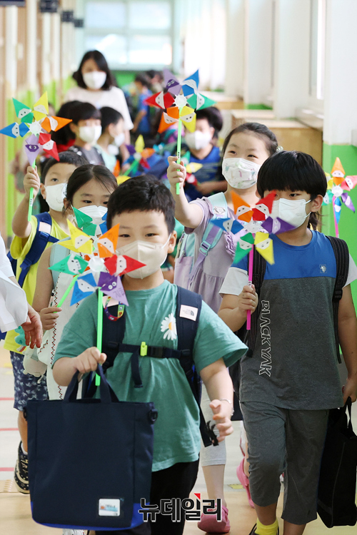 본격적인 여름방학이 시작된 15일 오후 서울 중구 청구초등학교 교실에서 방학식이 열리고 있다.