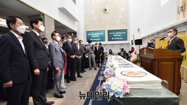 김현기 서울시의장이 15일 오후 서울 중구 서울시의회에서 열린 제11대 서울특별시의회 개원기념식에서 인사말을 하고 있다.