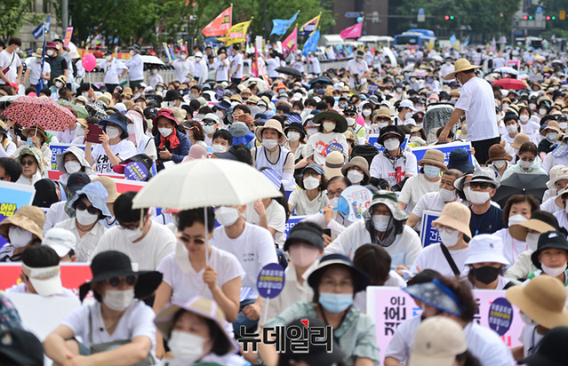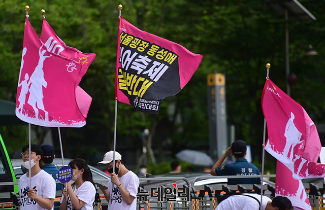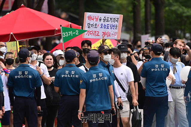 3년만에 서울광장에서 열린 퀴어축제에 맞서 16일 오후 기독교단체 회원들이 대한문과 서울시의회에서 차별금지법과 동성애를 반대하는 집회를 개최했다.