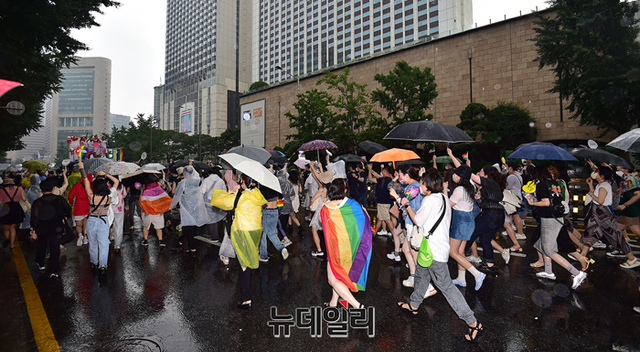 [포토] 폭우 속 행진하는 퀴어퍼레이드