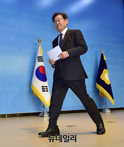 이재명 더불어민주당 의원이 17일 오후 국회 소통관에서 '8·28 전당대회'에 당대표 출마 선언을 하고 있다. 이 의원은 출마선언문을 통해 △미래형 민주당 △유능한 민주당 △강한 민주당 △국민 속에서 혁신하는 민주당 △통합의 민주당을 만들겠다고 공약했다.