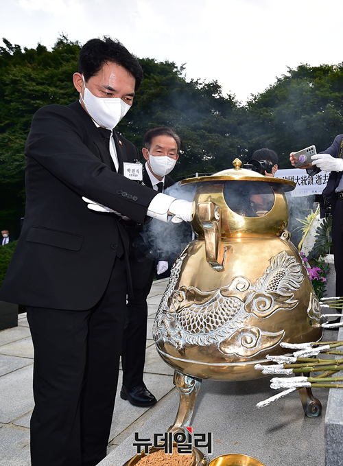 [포토] 우남 이승만 묘역 참배하는 박민식 보훈처장