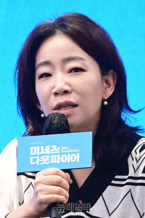 음악감독 김문정이 19일 오후 서울 중구 앰배서더 서울 풀만 호텔에서 열린 뮤지컬 '미세스 다웃파이어(연출 김동연)' 제작발표회에서 취재진의 질문을 답하고 있다.
