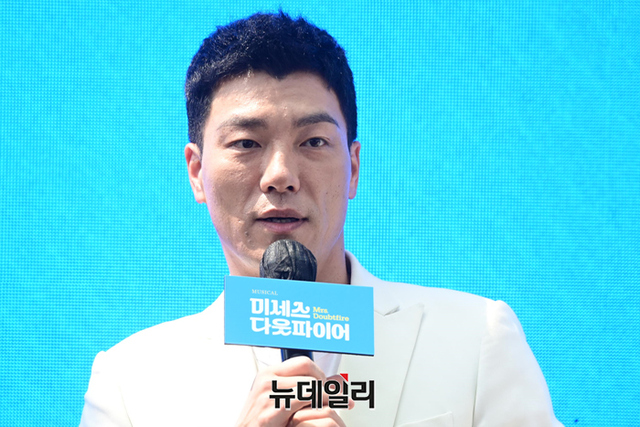 배우 양준모가 19일 오후 서울 중구 앰배서더 서울 풀만 호텔에서 열린 뮤지컬 '미세스 다웃파이어(연출 김동연)' 제작발표회에서 취재진의 질문을 답하고 있다.