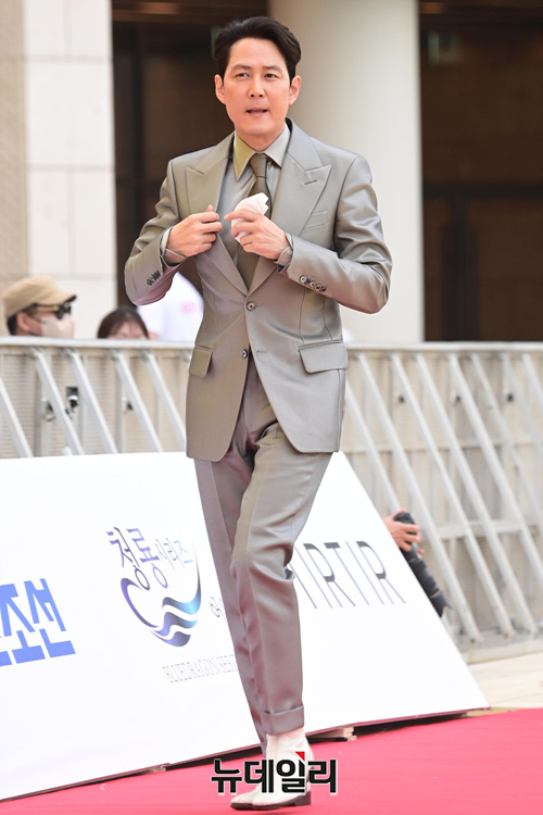 배우 이정재가 19일 오후 인천 파라다이스시티에서 열린 제1회 청룡시리즈어워즈 레드카펫 행사에서 포즈를 취하고 있다.