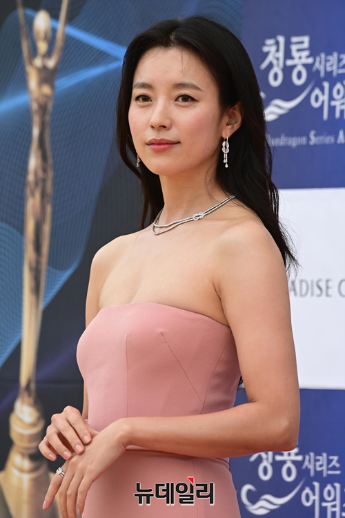 배우 한효주가 19일 오후 인천 파라다이스시티에서 열린 제1회 청룡시리즈어워즈 레드카펫 행사에서 포즈를 취하고 있다.