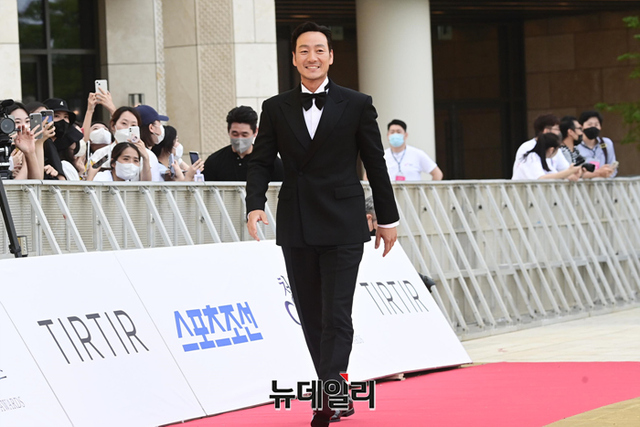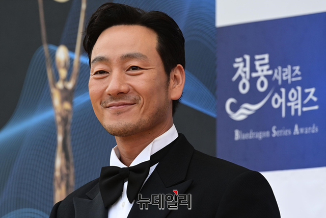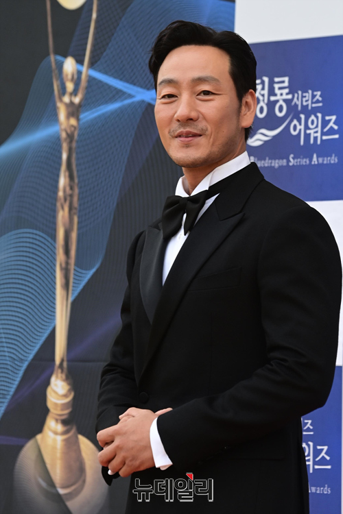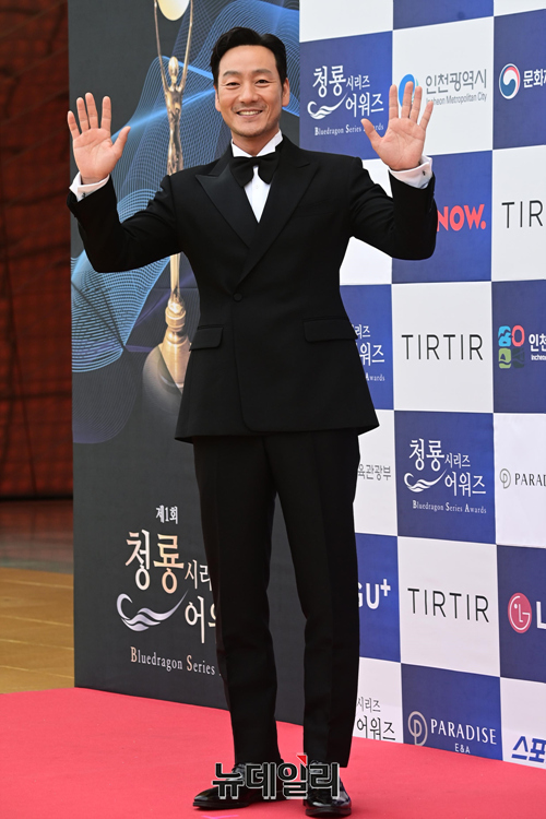 배우 박해수가 19일 오후 인천 파라다이스시티에서 열린 제1회 청룡시리즈어워즈 레드카펫 행사에서 포즈를 취하고 있다.