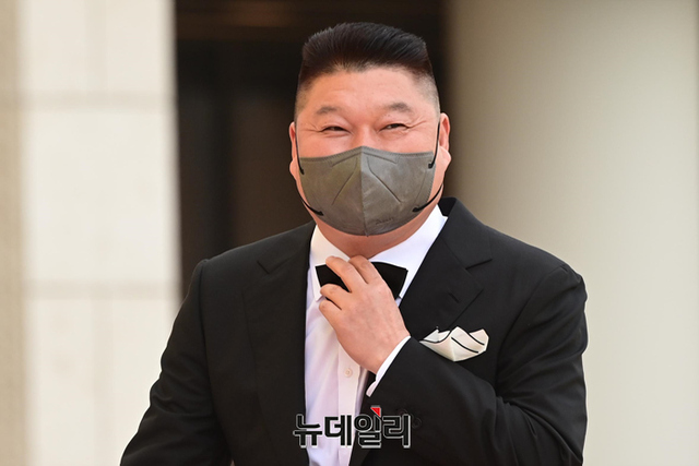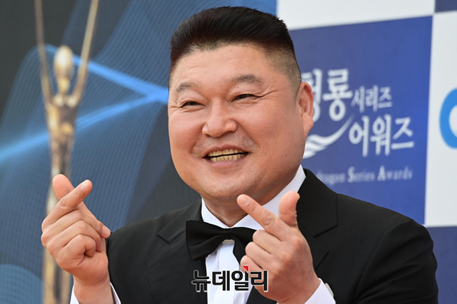 방송인 강호동이 19일 오후 인천 파라다이스시티에서 열린 제1회 청룡시리즈어워즈 레드카펫 행사에서 포즈를 취하고 있다.