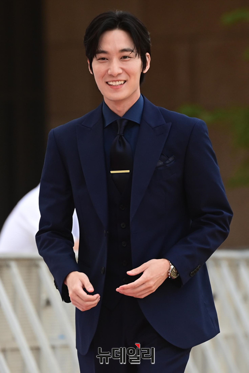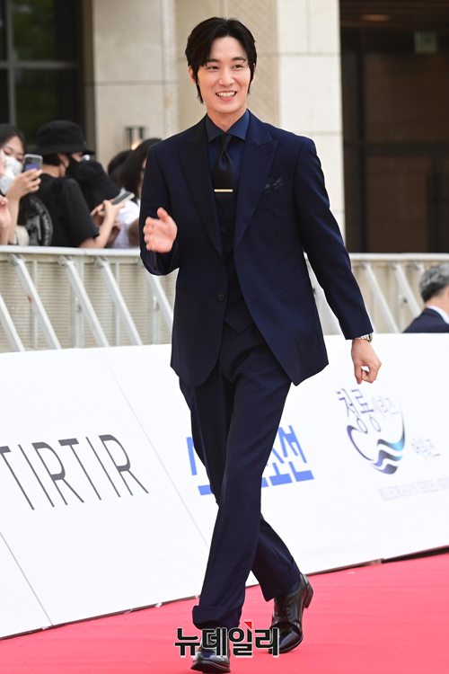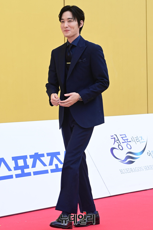 배우 장률이 19일 오후 인천 파라다이스시티에서 열린 제1회 청룡시리즈어워즈 레드카펫 행사에서 포즈를 취하고 있다.