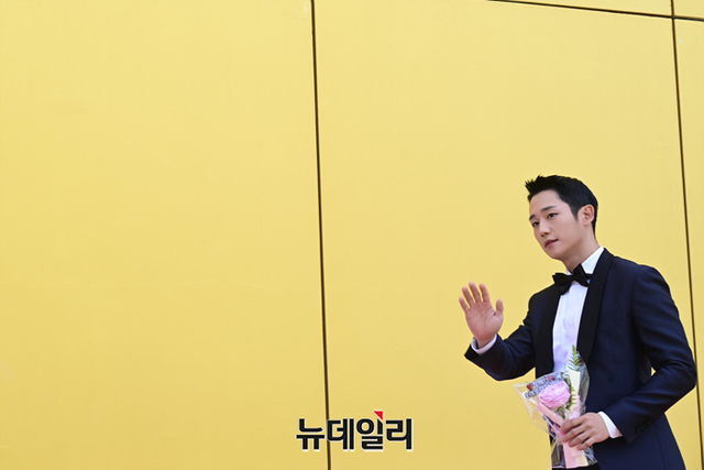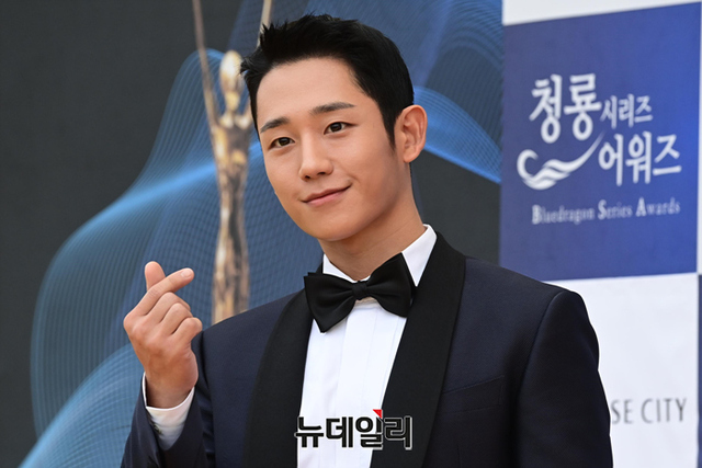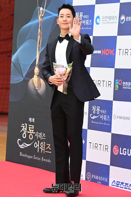 배우 정해인이 19일 오후 인천 파라다이스시티에서 열린 제1회 청룡시리즈어워즈 레드카펫 행사에서 포즈를 취하고 있다.