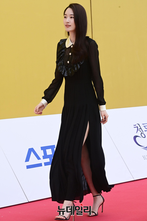 배우 원지안이 19일 오후 인천 파라다이스시티에서 열린 제1회 청룡시리즈어워즈 레드카펫 행사에서 포즈를 취하고 있다.