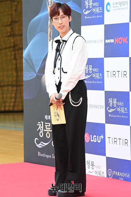 방송인 재재가 19일 오후 인천 파라다이스시티에서 열린 제1회 청룡시리즈어워즈 레드카펫 행사에서 포즈를 취하고 있다.