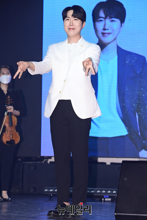 가수 천재원이 20일 오전 서울 마포구 롤링홀에서 열린 디지털 싱글앨범 '사랑♥시간=그리움' 발매기념 쇼케이스에서 포즈를 취하고 있다.