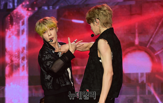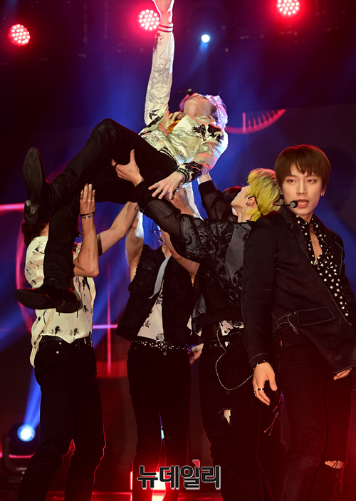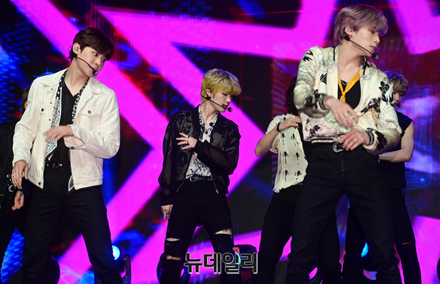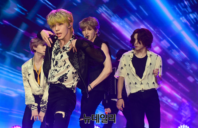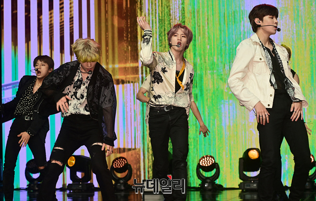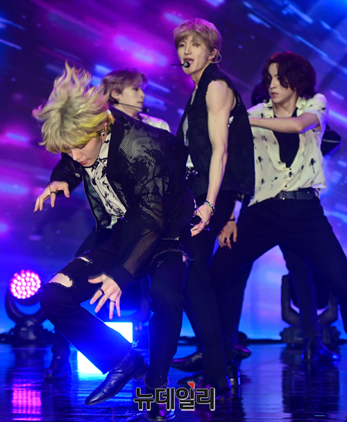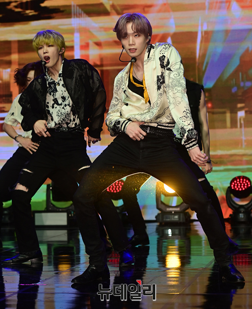 [포토] 파워풀한 군무 '힛 더 베이스'로 컴백한 블리처스