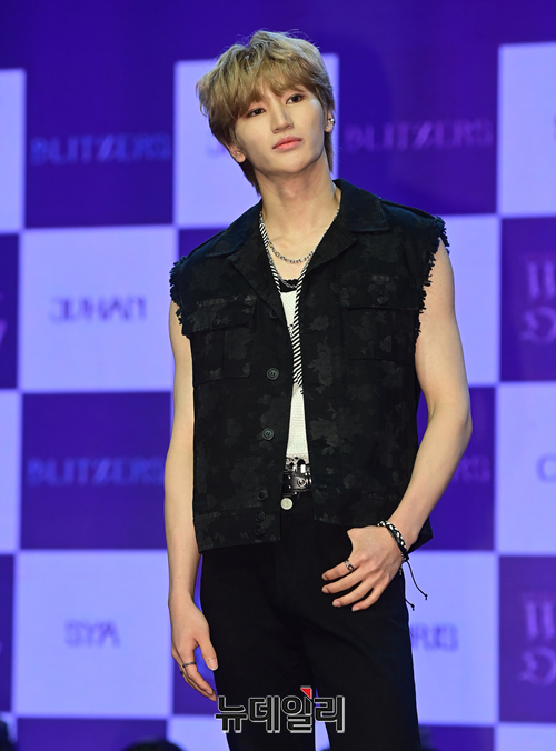 아이돌그룹 블리처스 루탄이 20일 오전 서울 강남구 일지아트홀에서 열린 3번째 EP앨범 'WIN-DOW' 발매기념 쇼케이스에서 포토타임을 갖고 있다.