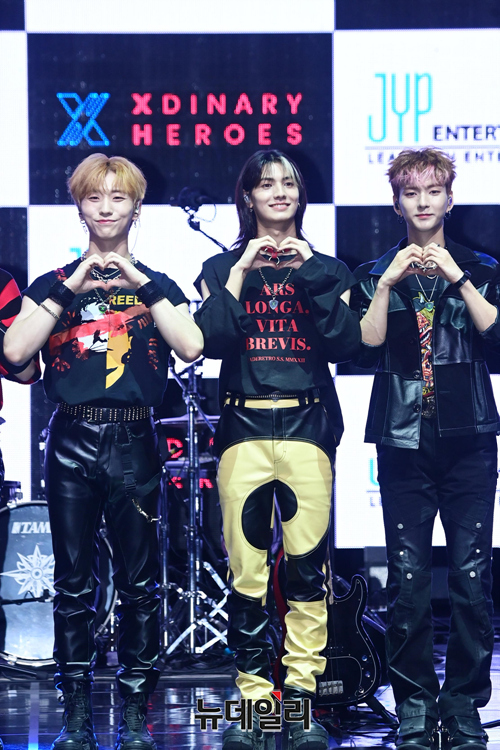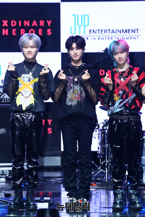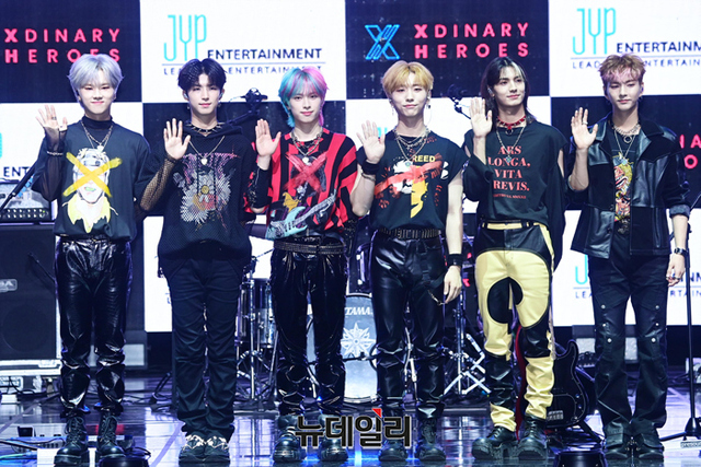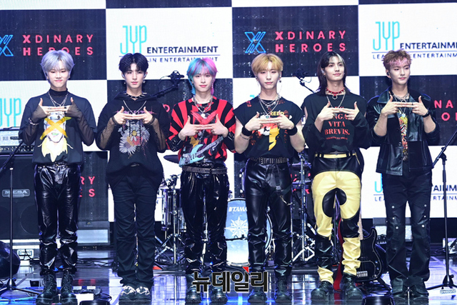 아이돌그룹 엑스디너리 히어로즈 멤버 정수(왼쪽부터), 준한, 가온, 건일, 주연, 오드가 20일 오후 서울 용산구 블루스퀘어 마스터카드홀에서 열린 첫 미니앨범 '헬로, 월드!(Hello, world!)' 발매기념 쇼케이스에서 포즈를 취하고 있다.앨범 '헬로, 월드!'는 프로그래밍 언어를 배우는 첫 번째 단계를 의미하며 앨범명처럼, 각자의 삶을 살던 여섯 멤버가 미지의 공간 '플랫폼'에 첫걸음을 내딛고 한자리에 모이게 되는 과정을 담았다.타이틀곡 '테스트 미'(Test Me)를 비롯해 '낙 다운'(KNOCK DOWN), '서커 펀치!'(Sucker Punch!), '스트로베리 케이크'(Strawberry Cake), '파이럿츠'(Pirates) 등이 수록됐다. 음원은 오후 6시 공개.