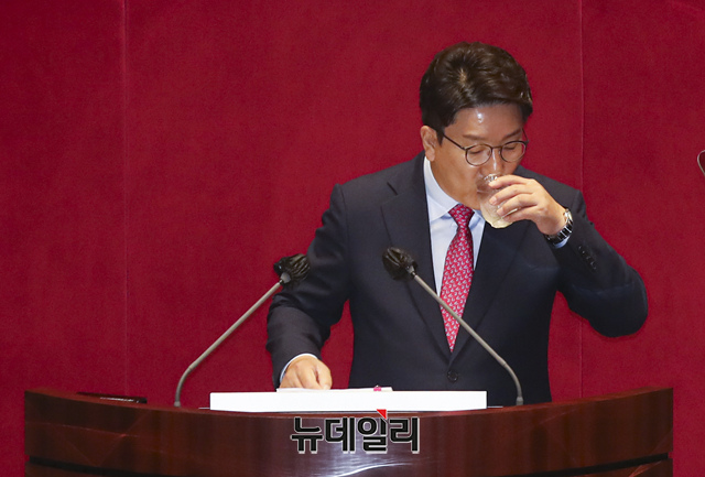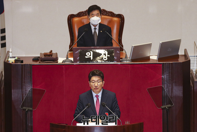 권성동 국민의힘 대표 직무대행 겸 원내대표가 21일 오전 국회에서 열린 본회의에서 교섭단체대표연설을 하고 있다. (사진=공동취재단)