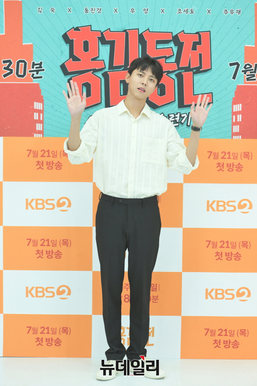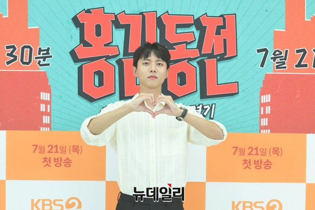 모델 주우재가 21일 오후 온라인으로 열린 KBS 2TV 신 예능 '홍김동전(연출 박인석, 이명섭)' 제작발표회에서 포즈를 취하고 있다.