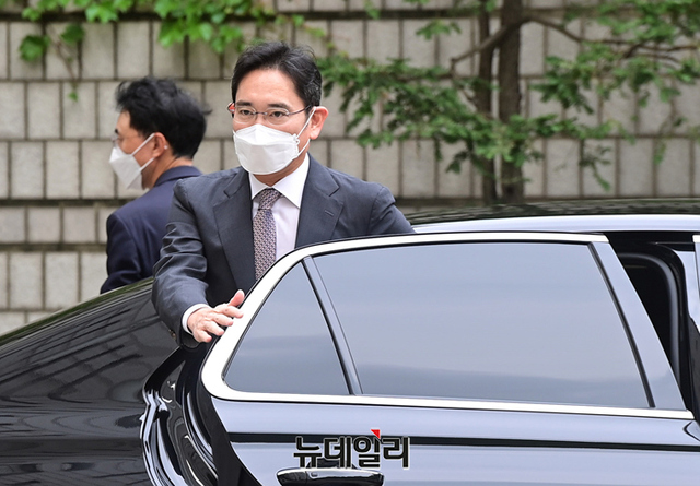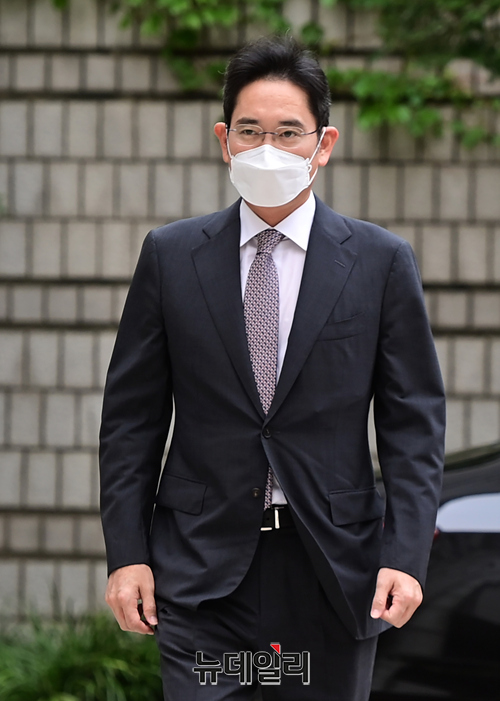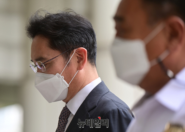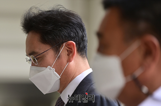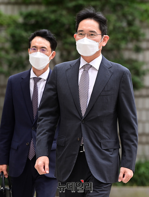 이재용 삼성전자 부회장이 22일 오전 서울 서초구 서울중앙지법에서 열린 재판에 입장하고 있다.