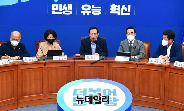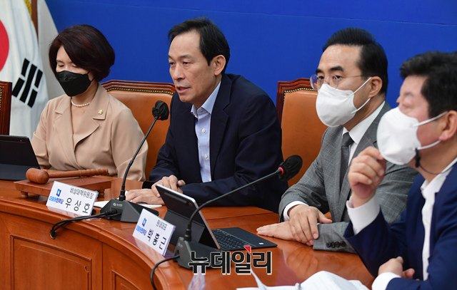 우상호 더불어민주당 비상대책위원장이 22일 오전 국회에서 열린 비상대책위원회의에서 모두발언을 하고 있다.