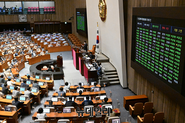 연금개혁특별위원회 구성결의안이 22일 오후 국회에서 열린 본회의를 통과하고 있다. (사진=공동취재단)