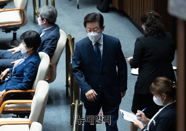 이재명 더불어민주당 의원이 22일 오후 국회에서 열린 본회의를 참석하고 있다. (사진=공동취재단)