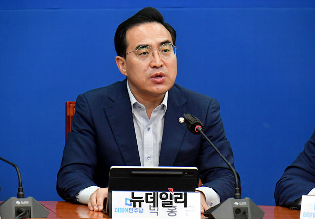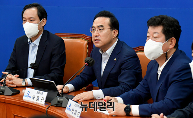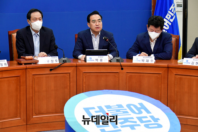 박홍근 더불어민주당 원내대표가 25일 국회에서 열린 비상대책위원회의에서 모두발언을 하고 있다.