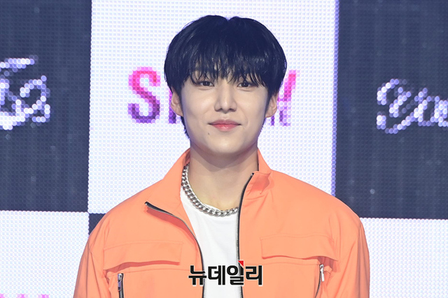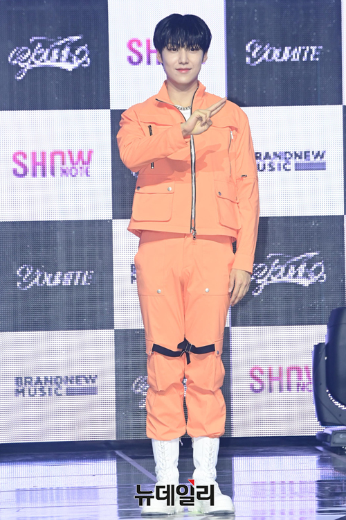 아이돌그룹 유나이트 멤버 은상이 25일 오후 서울 용산구 블루스퀘어 마스터가드홀에서 열린 두 번째 EP앨범 '유니크' 발매기념 쇼케이스에서 포즈를 취하고 있다.