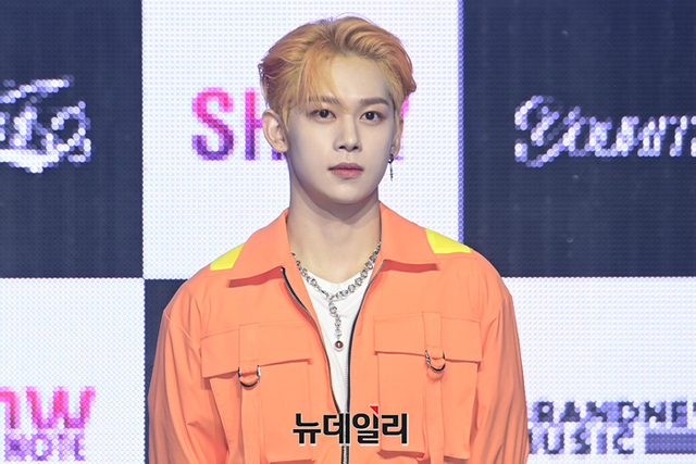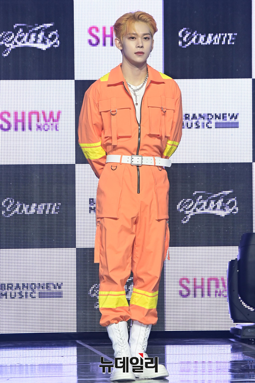 아이돌그룹 유나이트 멤버 스티브가 25일 오후 서울 용산구 블루스퀘어 마스터가드홀에서 열린 두 번째 EP앨범 '유니크' 발매기념 쇼케이스에서 포즈를 취하고 있다.