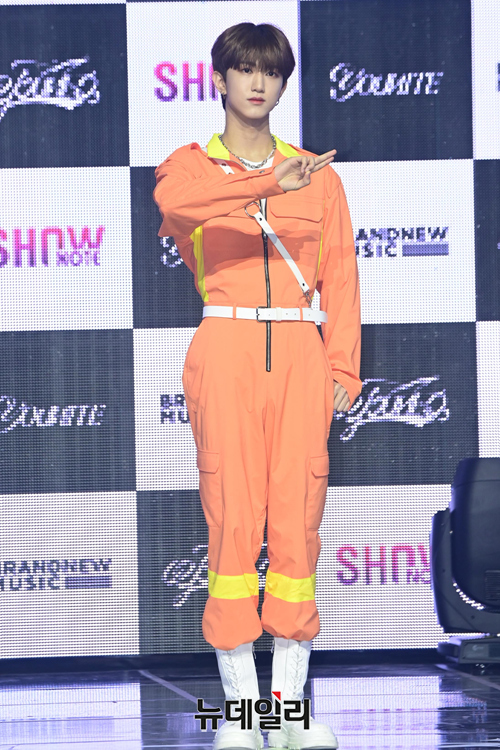 아이돌그룹 유나이트 멤버 경문이 25일 오후 서울 용산구 블루스퀘어 마스터가드홀에서 열린 두 번째 EP앨범 '유니크' 발매기념 쇼케이스에서 포즈를 취하고 있다.