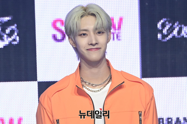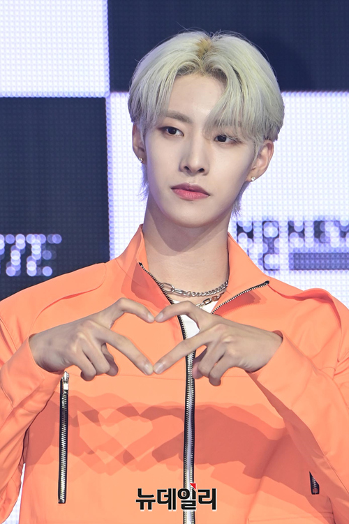 아이돌그룹 유나이트 멤버 현승이 25일 오후 서울 용산구 블루스퀘어 마스터가드홀에서 열린 두 번째 EP앨범 '유니크' 발매기념 쇼케이스에서 포즈를 취하고 있다.