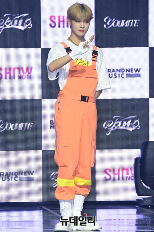 아이돌그룹 유나이트 멤버 시온이 25일 오후 서울 용산구 블루스퀘어 마스터가드홀에서 열린 두 번째 EP앨범 '유니크' 발매기념 쇼케이스에서 포즈를 취하고 있다.