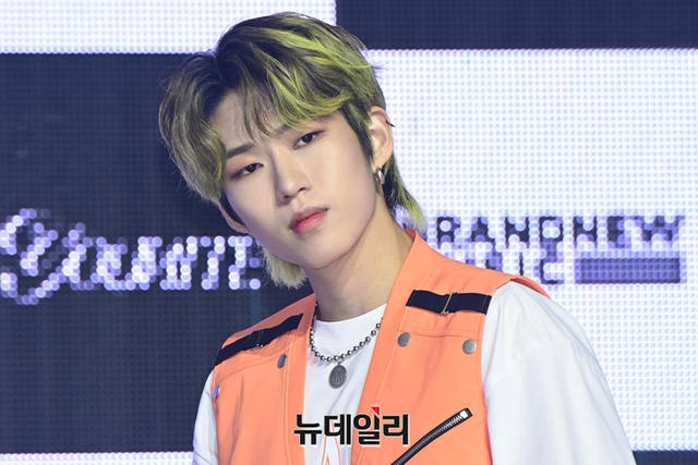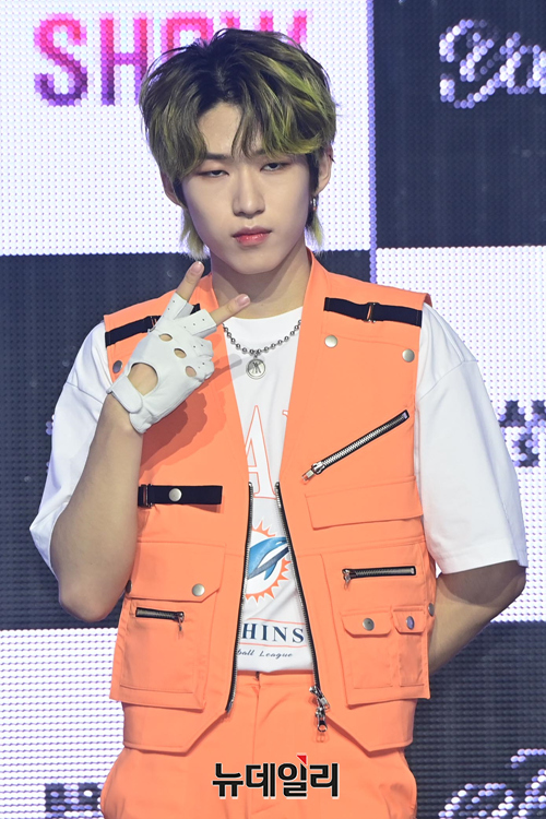아이돌그룹 유나이트 멤버 데이가 25일 오후 서울 용산구 블루스퀘어 마스터가드홀에서 열린 두 번째 EP앨범 '유니크' 발매기념 쇼케이스에서 포즈를 취하고 있다.