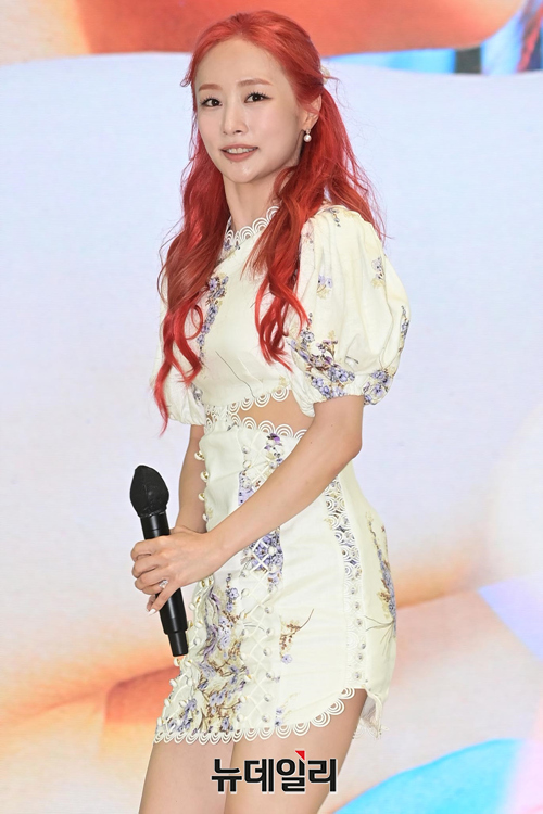 가수 니콜이 26일 오전 서울 중구 크레스트72에서 열린 디지털 싱글앨범 '유에프오(YOU.F.O)' 발매기념 기자간담회에 참석해 인사를 하고 있다.