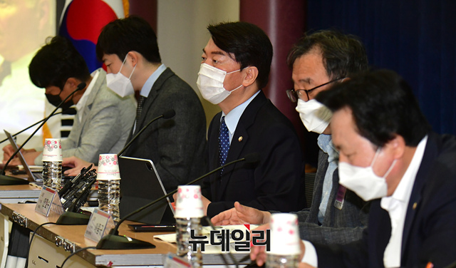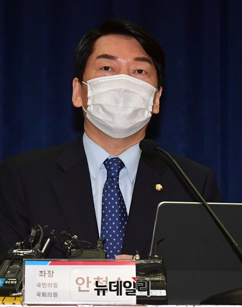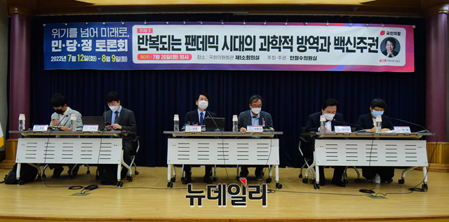 안철수 국민의힘 의원이 26일 국회 의원회관에서 열린 위기를 넘어 미래로, 민·당·정 토론회 '반복되는 팬데믹 시대의 과학적 방역과 백신주권' 에서 발언을 하고 있다.
