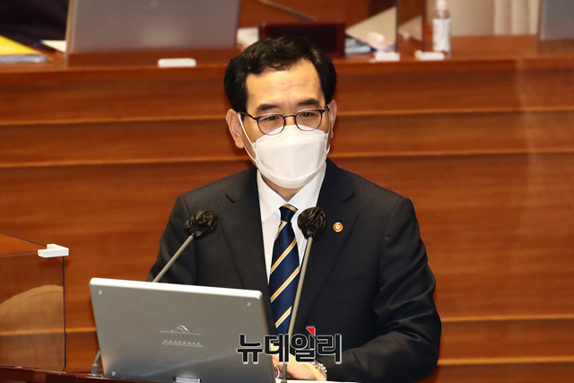 이창양 산업통상자원부 장관이 26일 오후 국회 본회의장에서 열린 경제분야 대정부질문에서 의원들의 질의에 답변하고 있다. (사진=공동취재단)