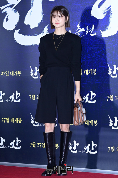 배우 박정화가 26일 오후 서울 송파구 롯데시네마 월드타워점에서 열린 영화 '한산:용의 출현(감독 김한민)' VIP시사회에서 포즈를 취하고 있다.