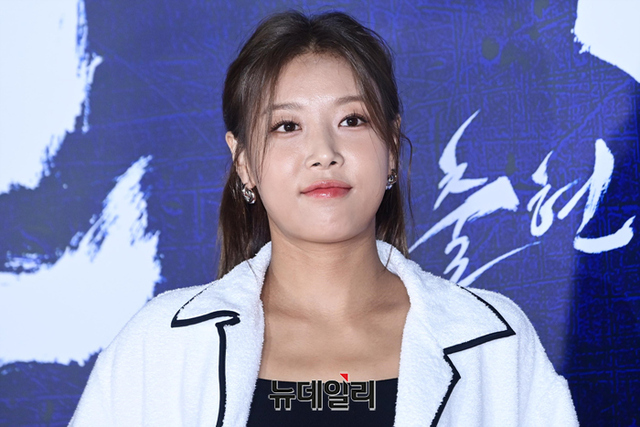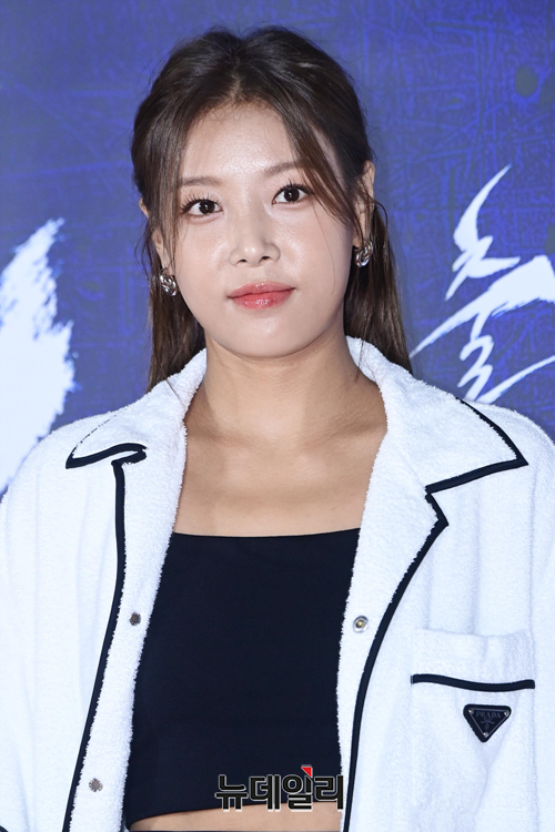 가수 유빈이 26일 오후 서울 송파구 롯데시네마 월드타워점에서 열린 영화 '한산:용의 출현(감독 김한민)' VIP시사회에서 포즈를 취하고 있다.