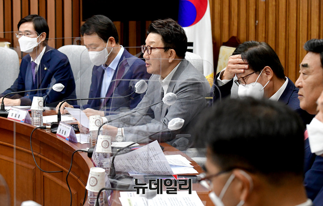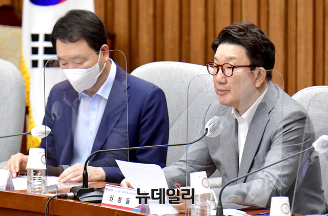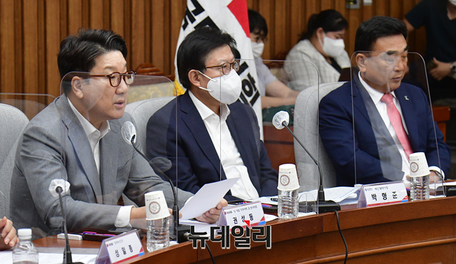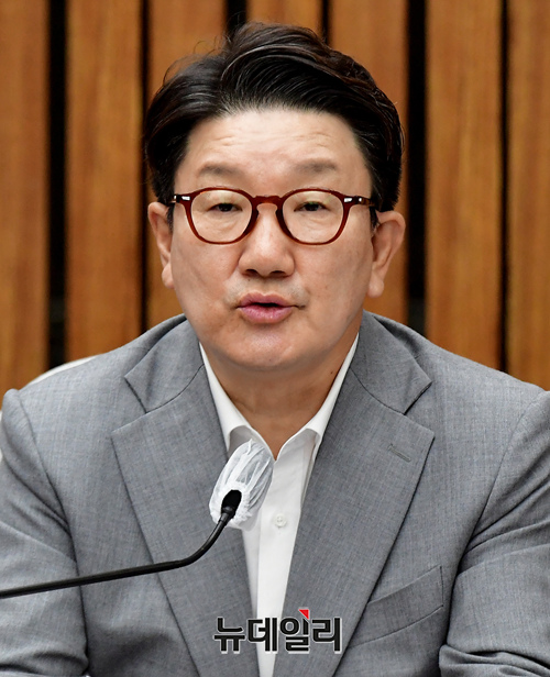 권성동 국민의힘 대표 직무대행이 27일 오전 국회에서 열린 국민의힘 부산·울산·경남 예산정책협의회에 참석해 모두발언을 하고 있다.