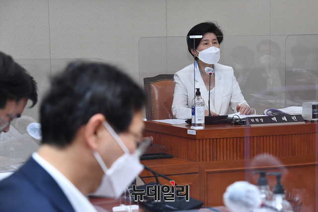 백혜련 국회 정무위원장이 28일 국회에서 열린 정무위원회 전체회의에서 발언을 하고 있다. (사진=공동취재단)