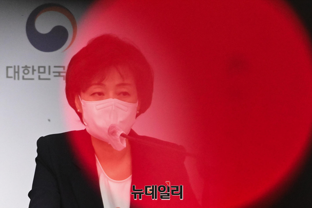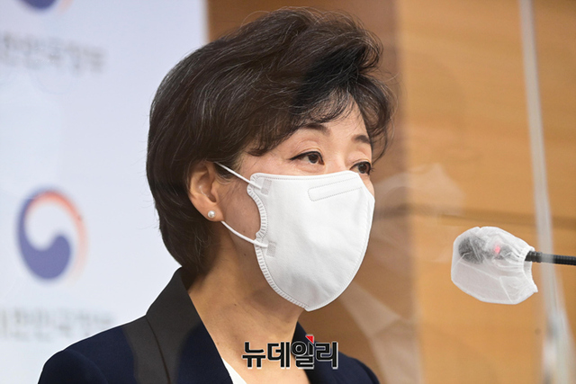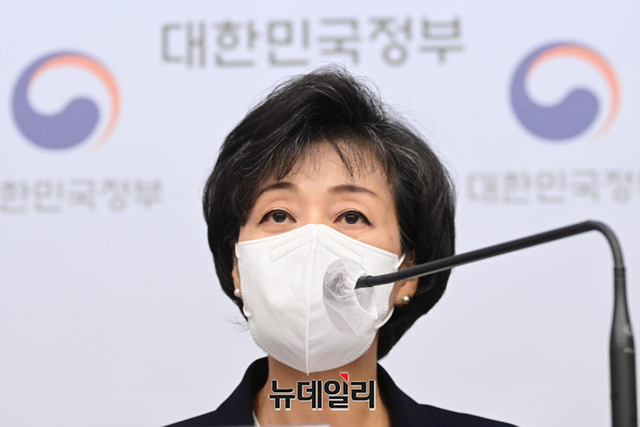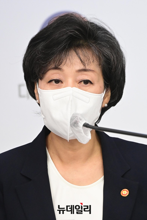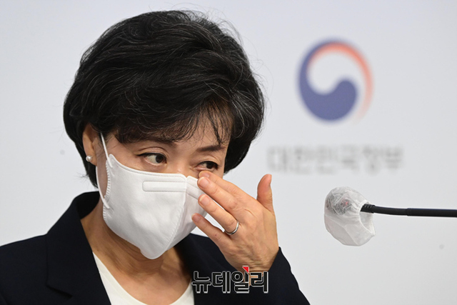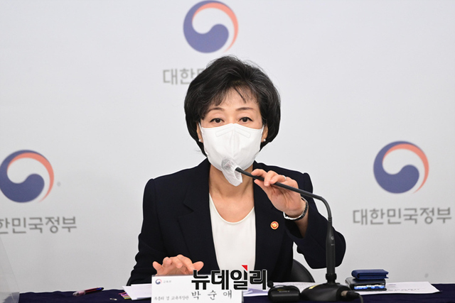 박순애 사회부총리 겸 교육부 장관이 29일 오전 서울 종로구 정부서울청사 별관에서 열린 새 정부 교육부 업무보고에서 발언을 하고 있다.