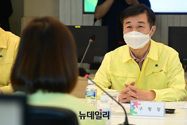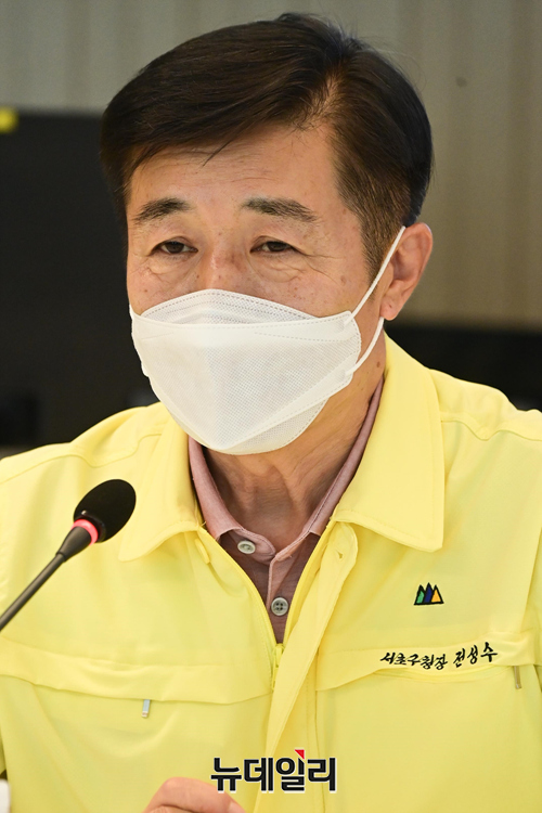 전성수 서초구청장이 29일 오후 서울 서초구청에서 열린 보건소 운영 현황 간담회에서 발언을 하고 있다.