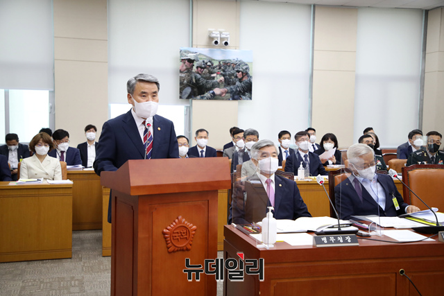 이종섭 국방부장관이 1일 서울 국회에서 열린 국방위원회 전체회의에서 업무보고를 하고 있다. (공동취재사진)