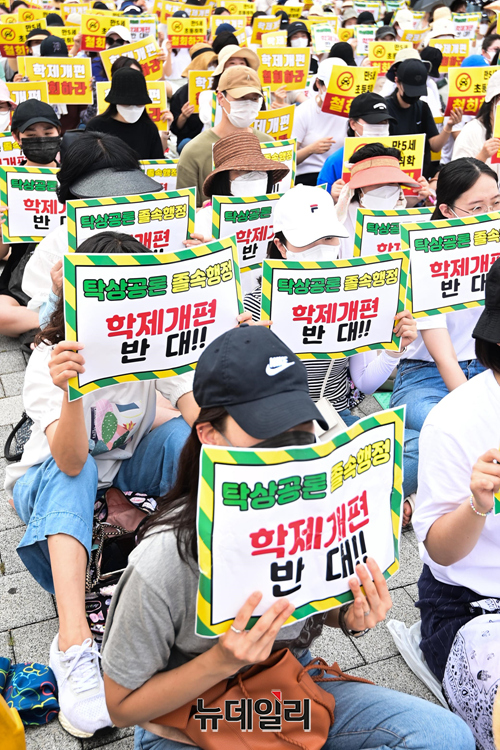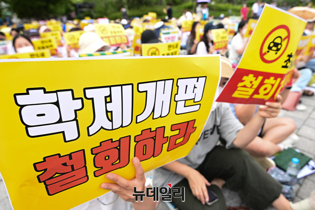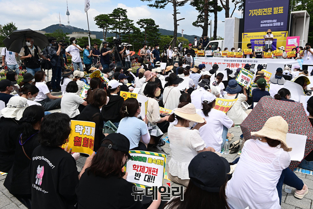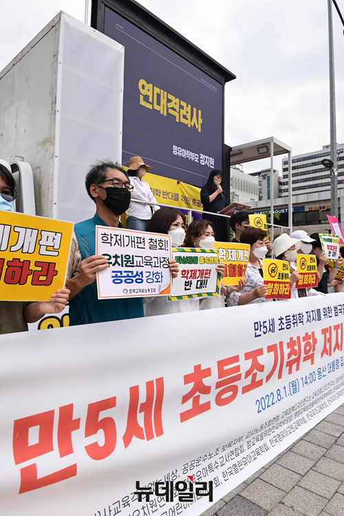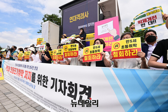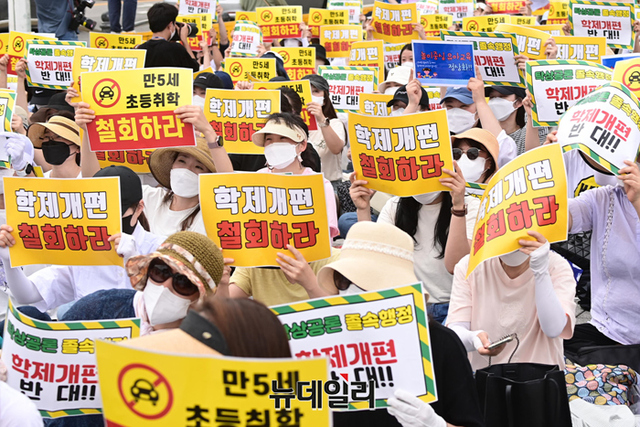 이들은 "만 5세 유아의 조기 취학은 인지와 정서 발달 특성상 부적절하다"며 "입시 경쟁과 사교육의 시기를 앞당기는 부작용을 초래할 수밖에 없다"고 주장했다. 이어 "앞으로도 학제 개편 반대 시위를 이어가겠다"고 말했다.