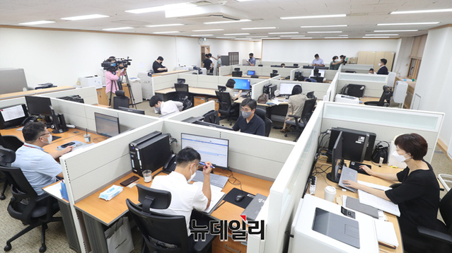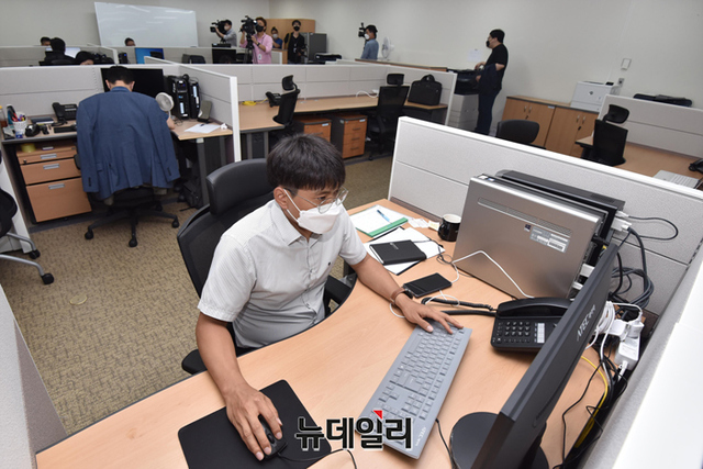 경찰국이 공식 출범한 2일 오전 서울 종로구 정부서울청사 내 경찰국에서 직원들이 업무를 보고 있다.